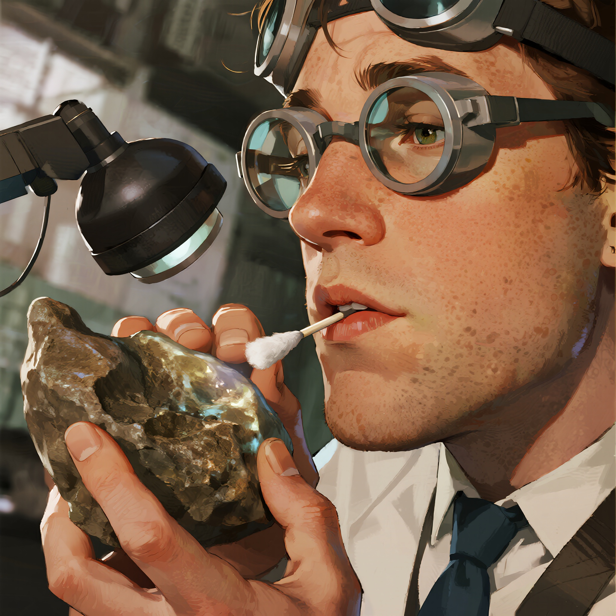 Robot face splitting into thousands of glowing shards